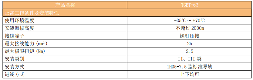 TGBT-63 小型透明外壳断路器 ( 以下简称断路器 ) 主要适用于交流50/60Hz,额定电压230V/400V,额定电流至63A的工业、商业/民用建筑、基础建设的临时用电等场所的电力线路设施和电气设备进行过载和短路保护之用,亦可用于不频繁地通断操作。